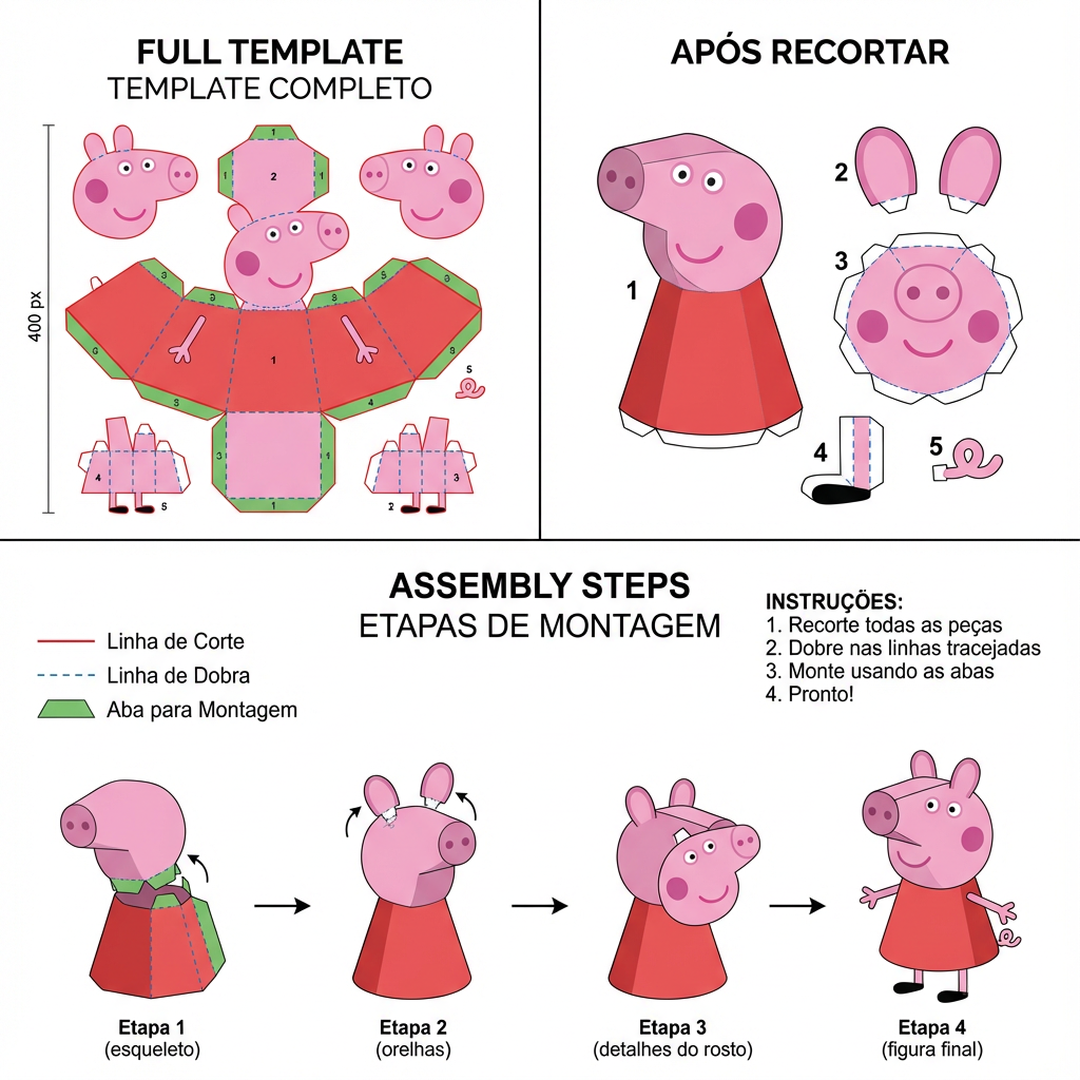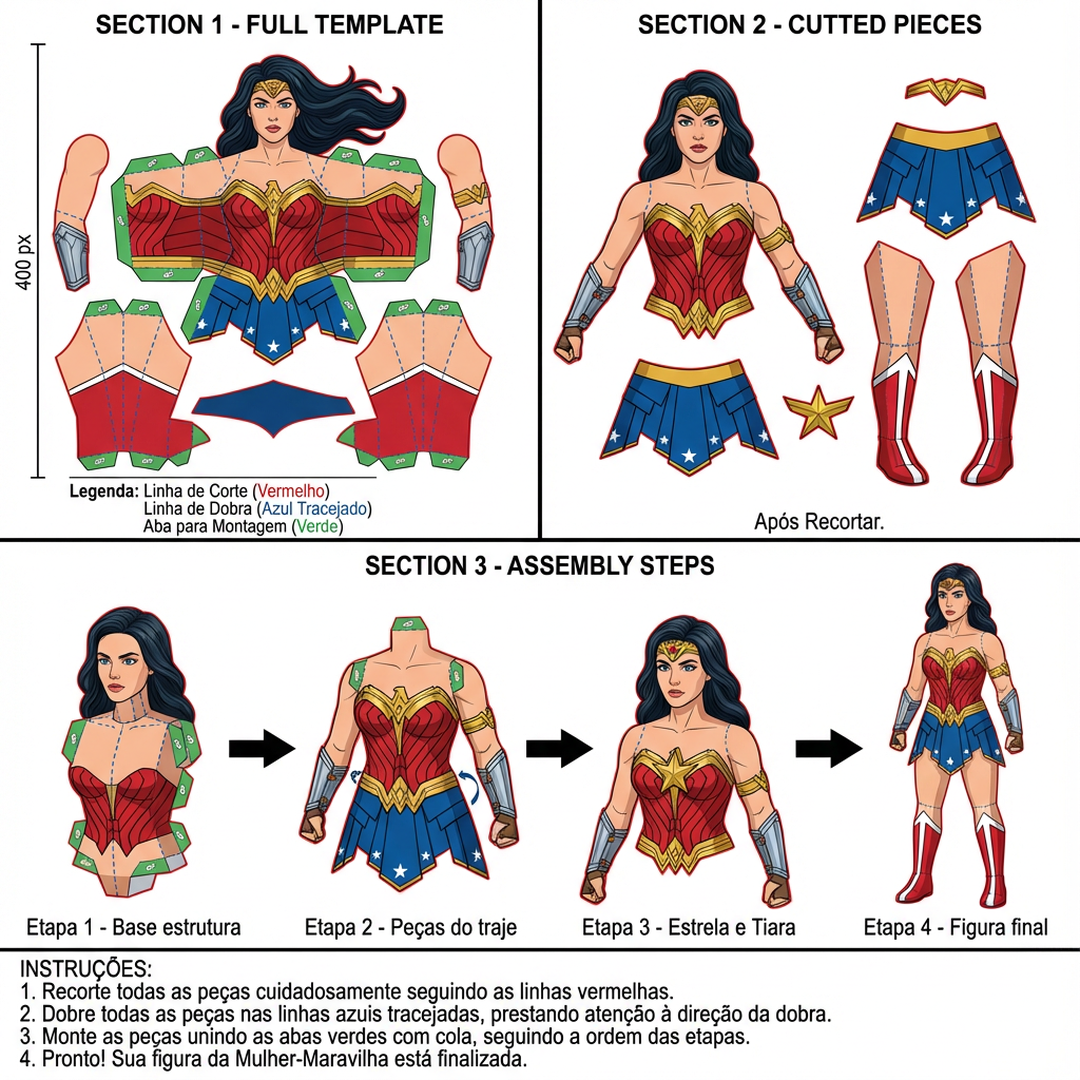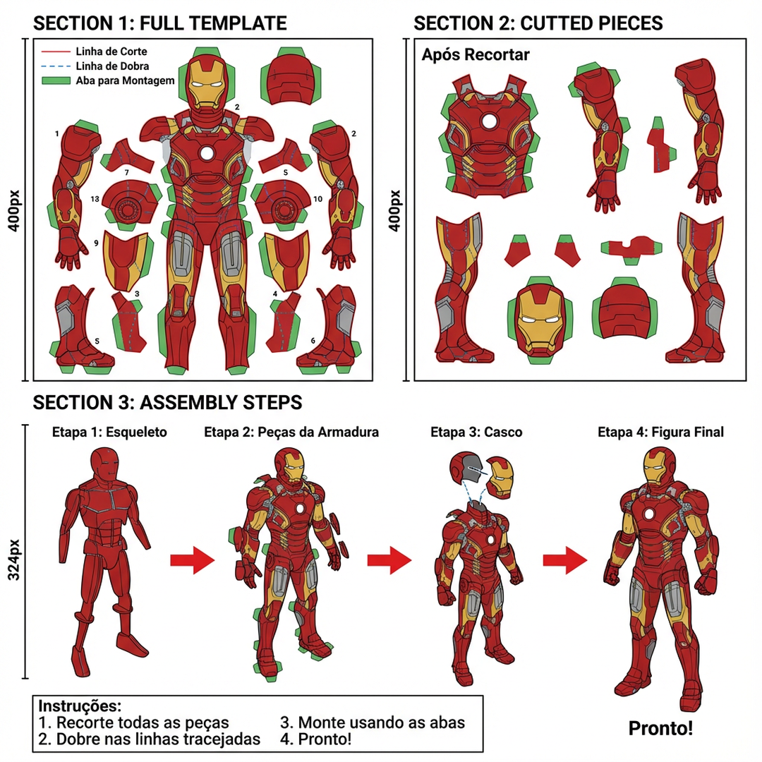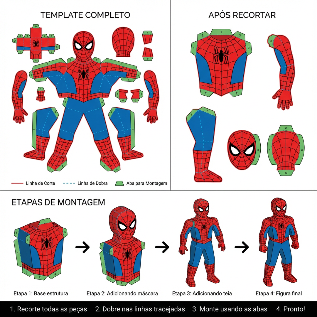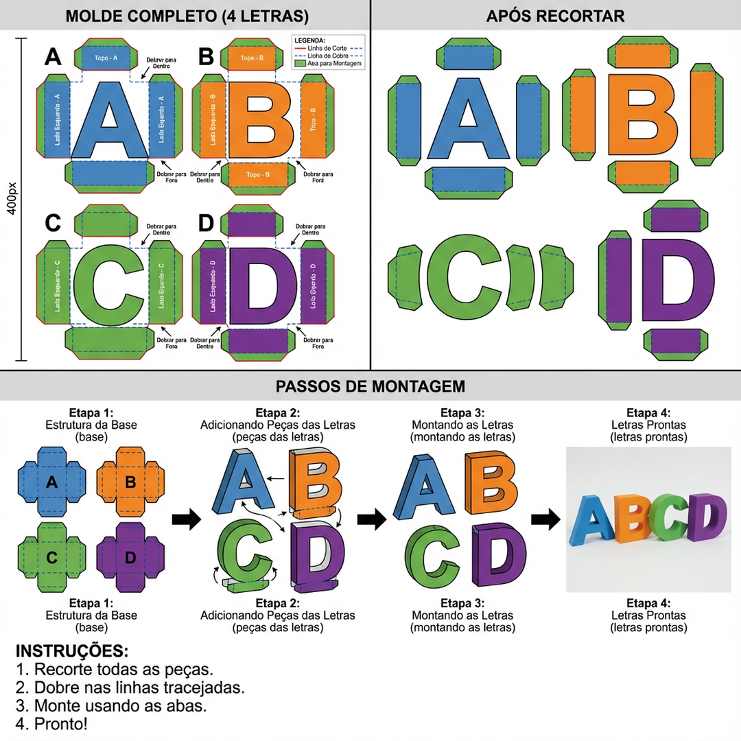 Todo molde vem com manual de montagem passo a passo e material para recorta.