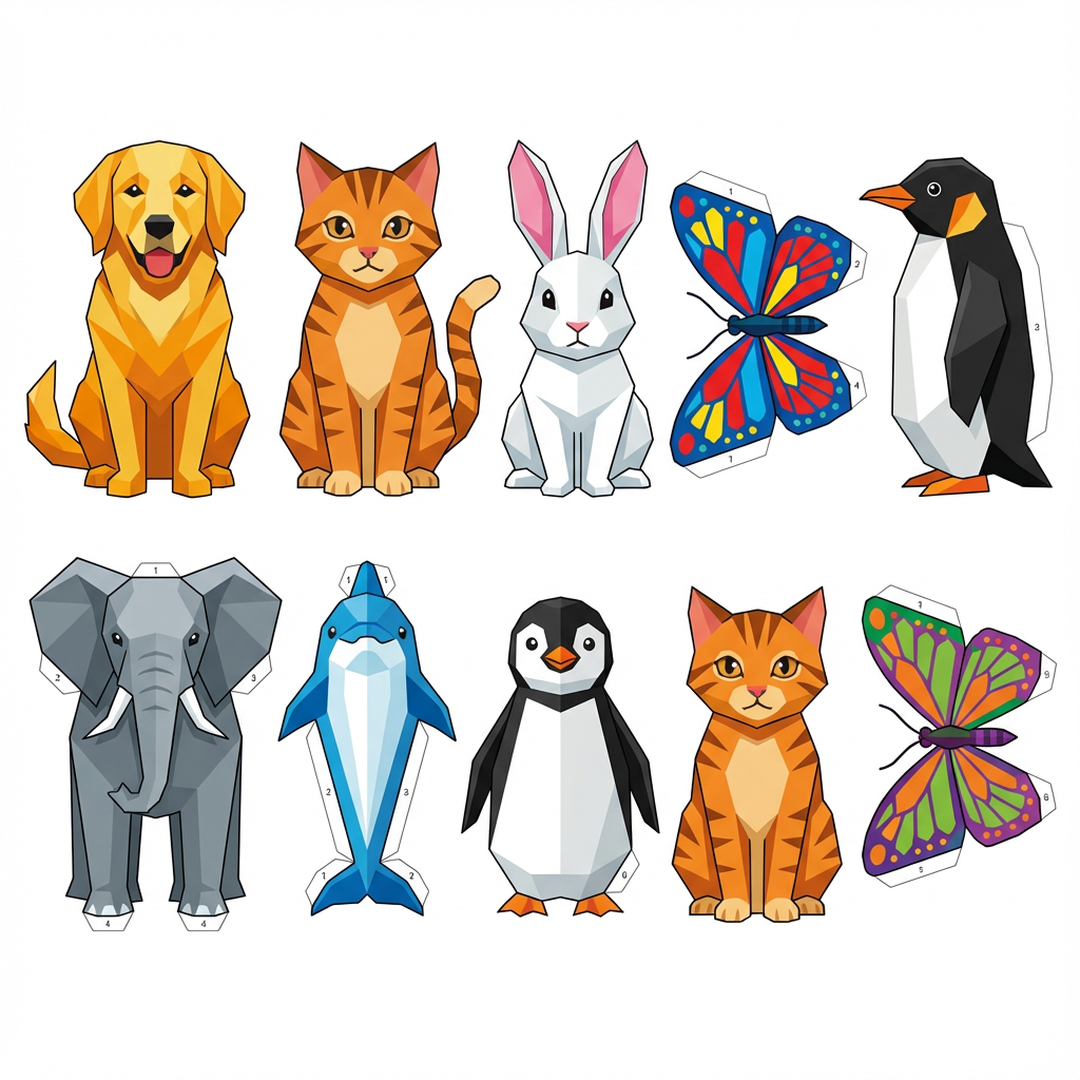 Painéis, enfeites, objetos 3D para colorir.