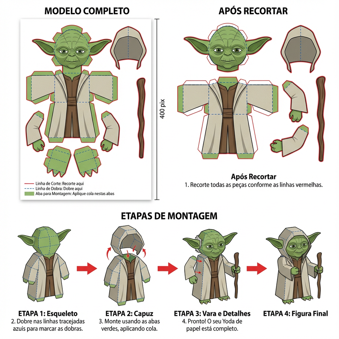 Recomendamos papel sulfite comum ou 180g para maior durabilidade.